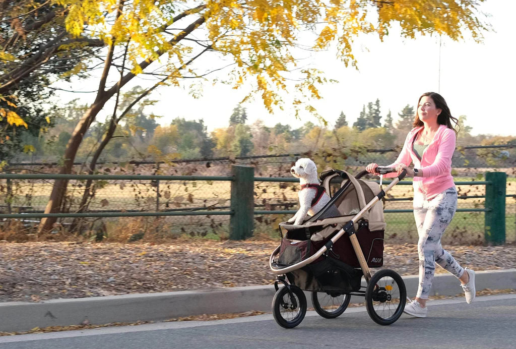 ¡Específicamente diseñado para familias activas con mascotas, este cochecito de alto rendimiento es perfecto para explorar la ciudad o hacer jogging en tu camino favorito. Es el único cochecito para mascotas de jogging todo terreno disponible equipado con 3 modos de transporte: CORRER, TROTAR y CAMINAR, para que puedas cambiar tu ritmo para adaptarse a tu entrenamiento. Su diseño aerodinámico es excelente para combatir la resistencia al viento al correr con tus queridas mascotas. El HPZ Pet Rover Run cuenta con tres grandes neumáticos de goma inflables que absorben los impactos tanto para las mascotas como para los padres, lo que hace que el paseo sea excepcionalmente suave y estable. El chasis rígido pero ligero de aluminio soporta hasta 22 kg. y tiene dos amarres interiores para que las familias con varias mascotas puedan disfrutar de actividades al aire libre. HPZ diseñó el Pet Rover Run pensando en la comodidad y la facilidad, cuenta con un manillar ergonómico ajustable para adaptarse a cualquier zancada, lo que te ayuda a ti y a tus mascotas a salir y disfrutar de hacer ejercicio al aire libre.