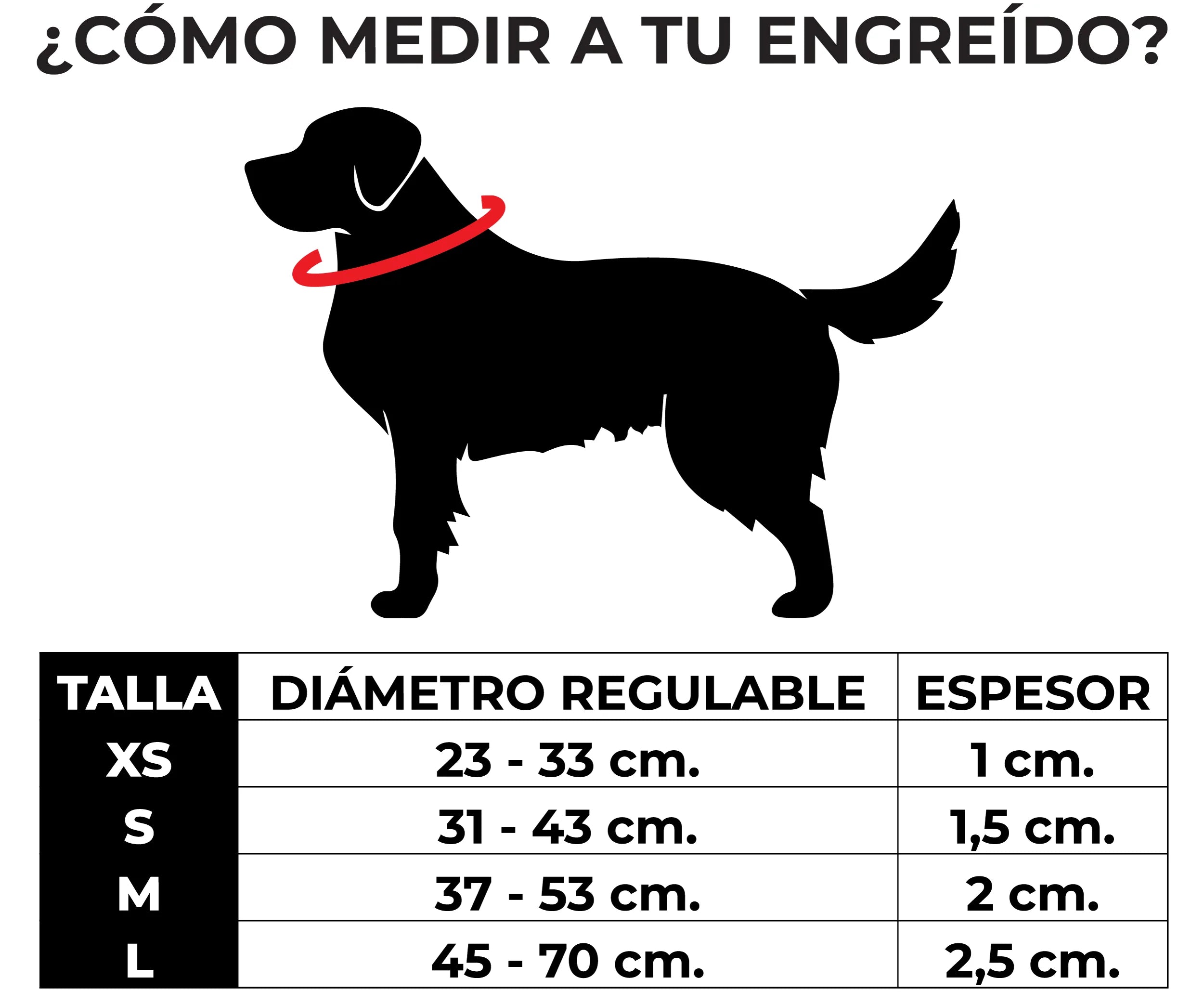 Cuenta con una hebilla de seguridad con sistema de bloqueo de 4 puntos, un anillo en D resistente para sujetar la correa y es totalmente ajustable para adaptarse al cuello de tu perro.